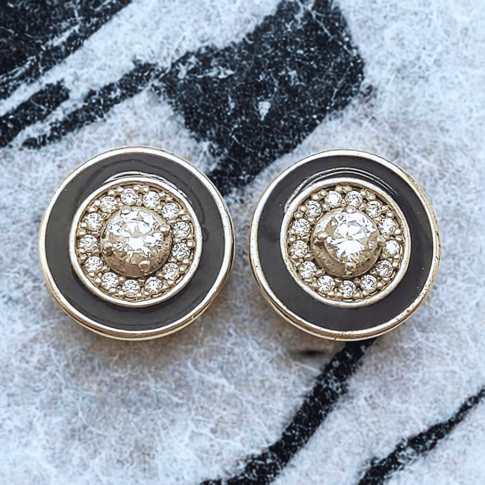 The color combination is both classic and edgy, making it a great match for many different styles. The geometric, gently curved shape provides an elegant frame for the ear, while the black insert visually highlights the contours of the face.