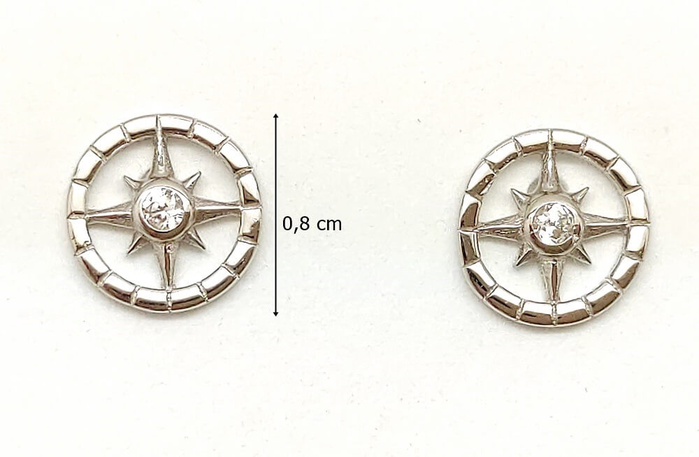 Discover these compass-inspired stud earrings, which are not only elegant but also symbolize adventure and travel. This unique piece of jewelry is made of 925 sterling silver, ensuring it will remain durable and shiny even after many years. The compass motif gives it a unique look and reminds you to always find the right path, wherever you go.