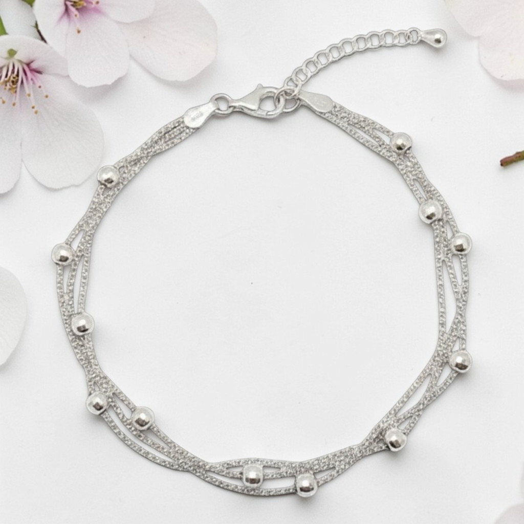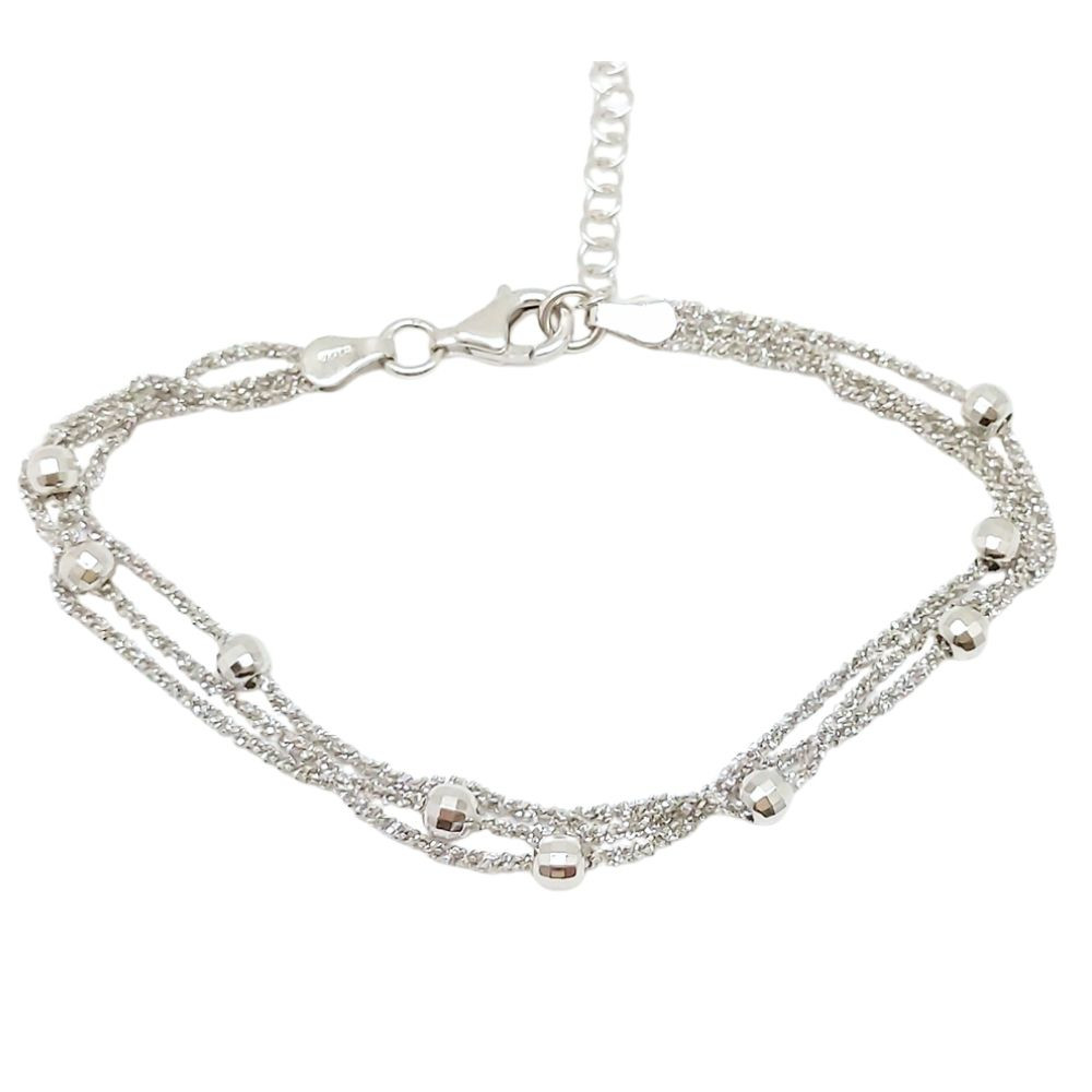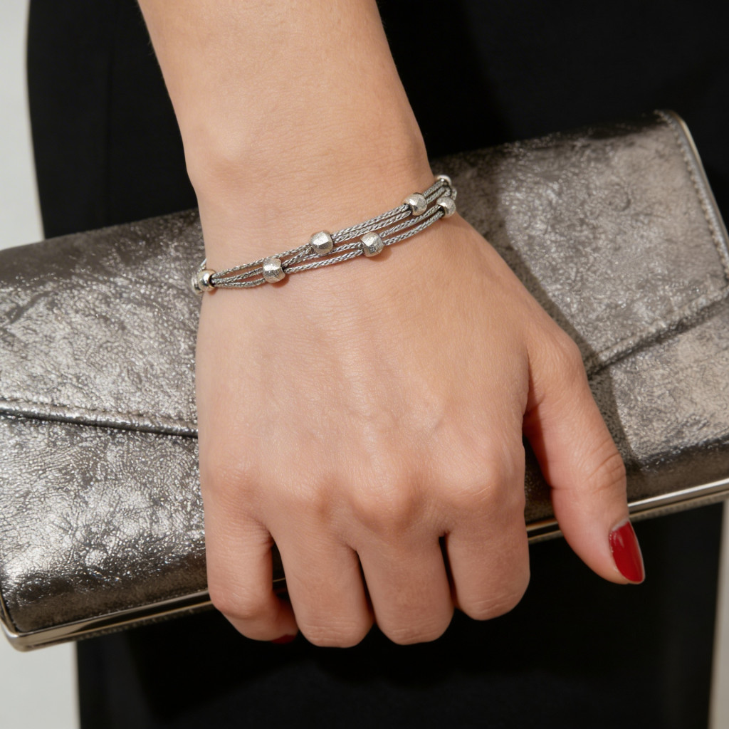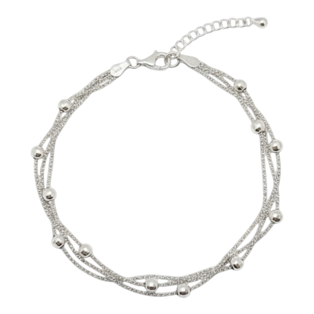 Three-row silver bracelet with beads