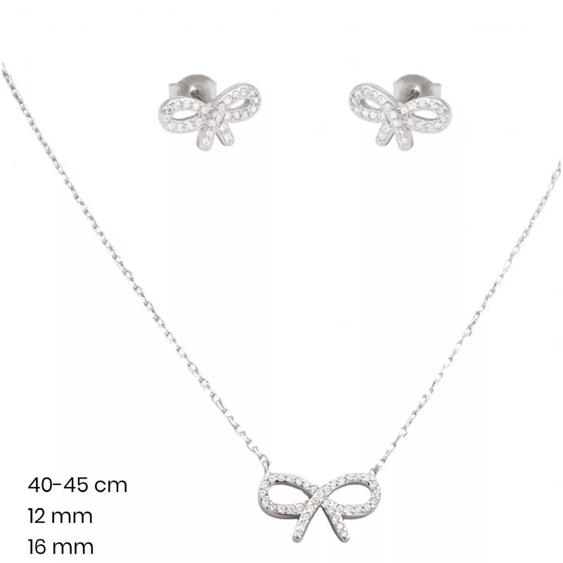 The two-piece silver bow jewelry set - necklace and earrings - is in stock and can be delivered to you in as little as one day.