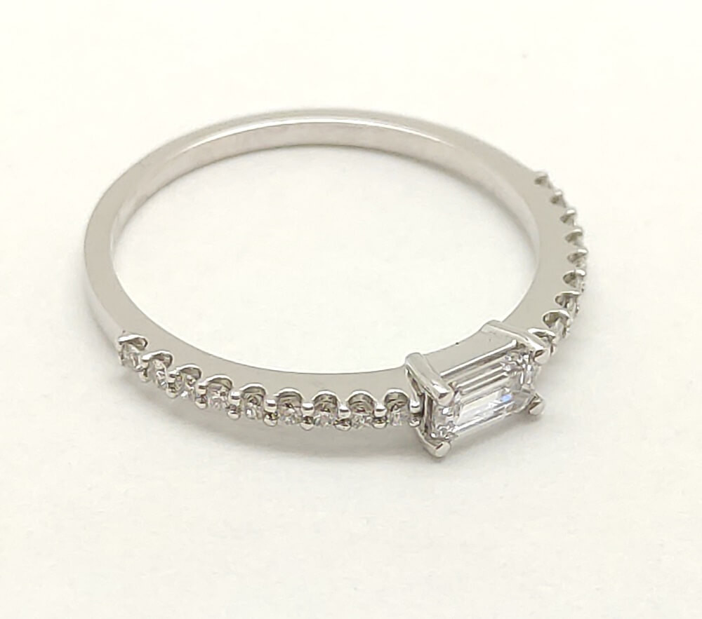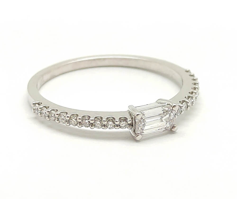 Next to it, 18 brilliant-cut diamonds totaling 0.18 carats make the ring truly magical. With this wonderful white gold engagement ring decorated with real diamonds, you can propose in style, but it also works well as a Promise ring or anniversary gift.