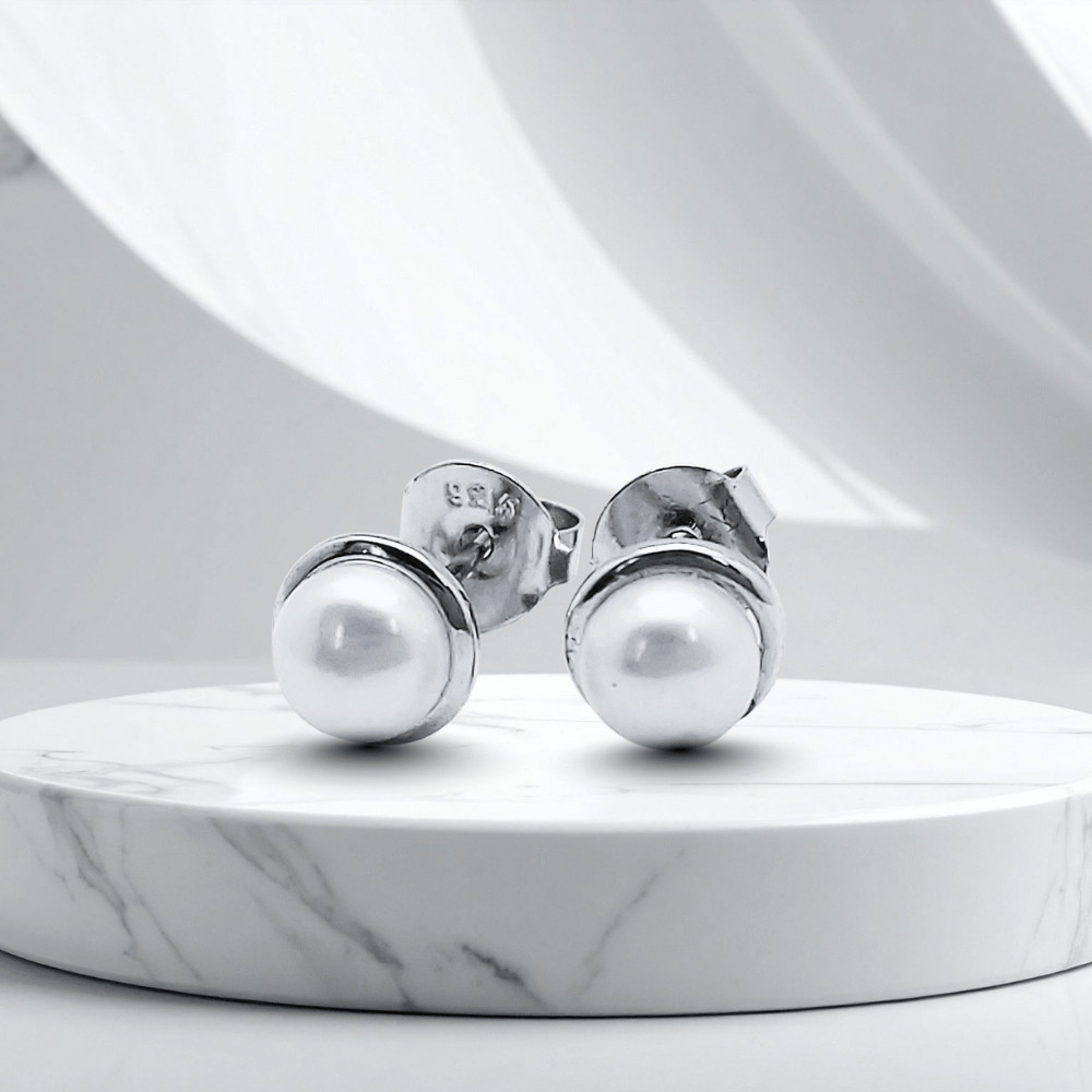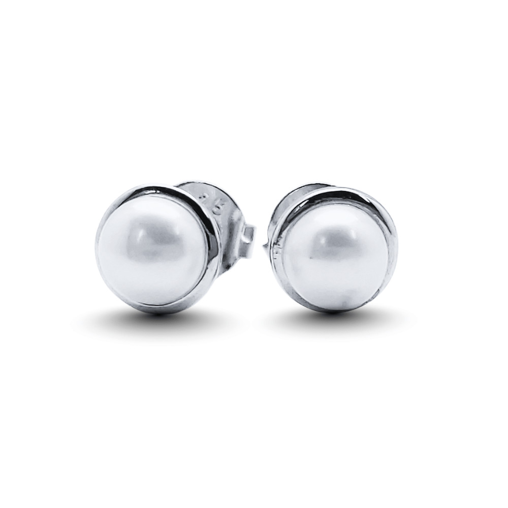 White freshwater pearl earrings are a classic, elegant accessory. The rhodium-plated 925 Sterling Silver surface ensures durability, while the delicate sparkle of the pearls highlights feminine elegance. The stud design ensures comfortable wear for both everyday and special occasions.