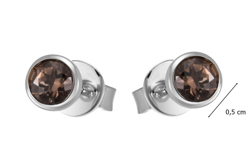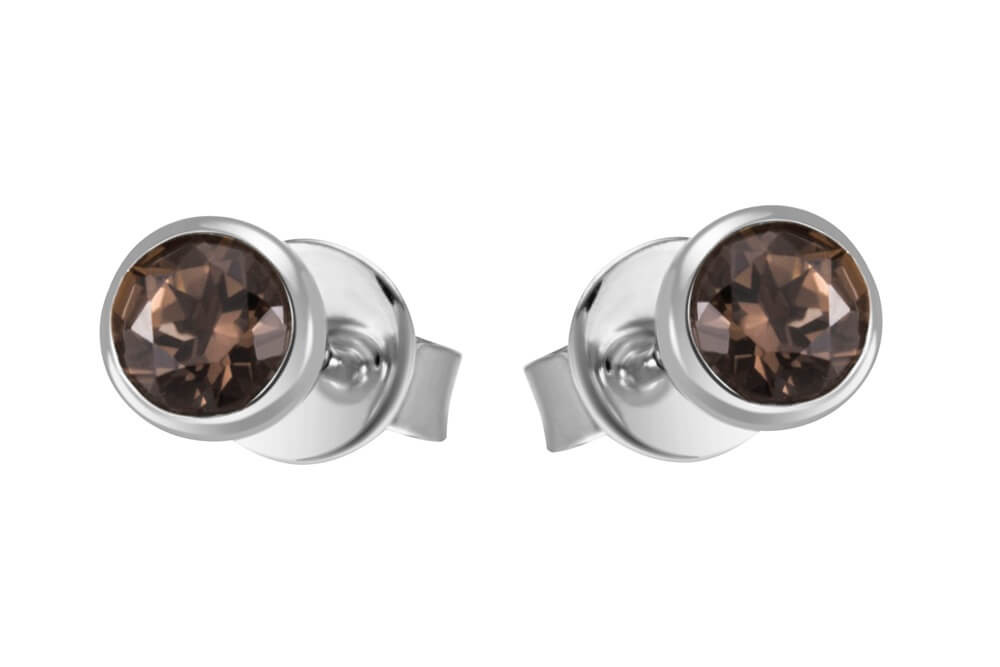 white gold stud earrings with smoky quartz stone.