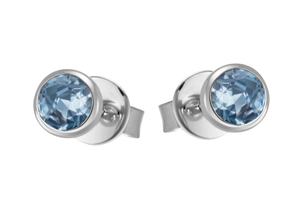 Beautiful 14-karat white gold gemstone earrings with a sparkling blue topaz in each.