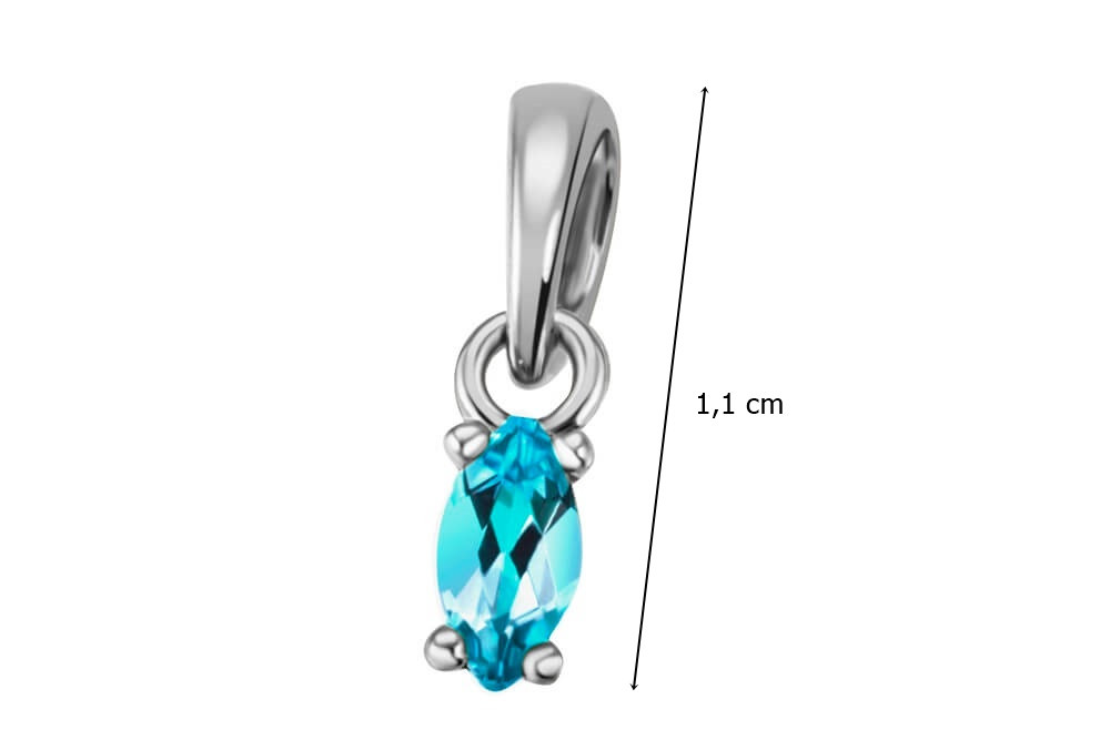 A beautiful combination of 14-karat white gold and sparkling light blue topaz gemstones for those who love cool elegance. Pair it with a white gold necklace to further enhance its beauty. You can wear this white gold topaz pendant with an elegant, snow-white or black occasion wear outfit, but you can also complement your royal blue dress with it.