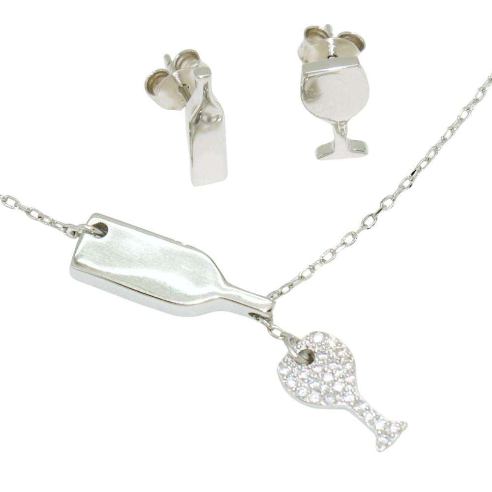 This silver necklace with a wine and glass motif is a real treat for wine lovers. The anchor chain necklace is made of finely crafted 925 Sterling Silver and is decorated with the silhouette of a wine bottle and glass, with the glass sparkling with zirconia stones. This piece of jewelry expresses your love and passion for wine and is the perfect gift for female wine enthusiasts, winemakers, sommeliers, in short, anyone who loves wine and wine tasting.